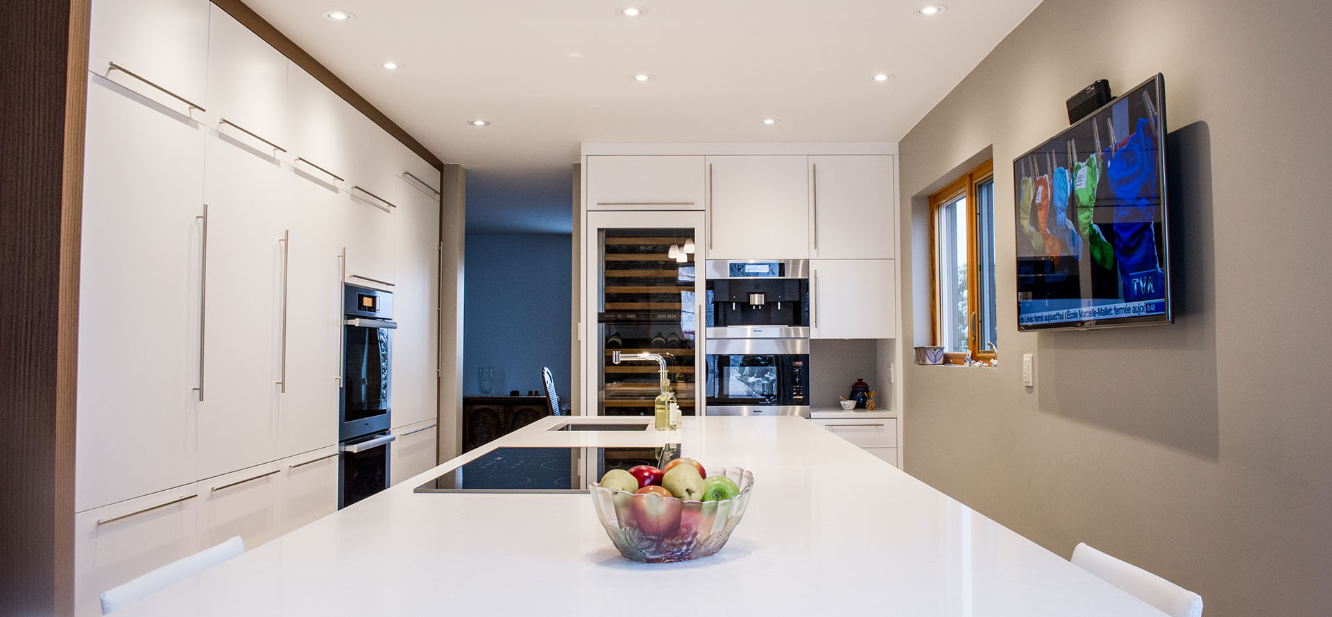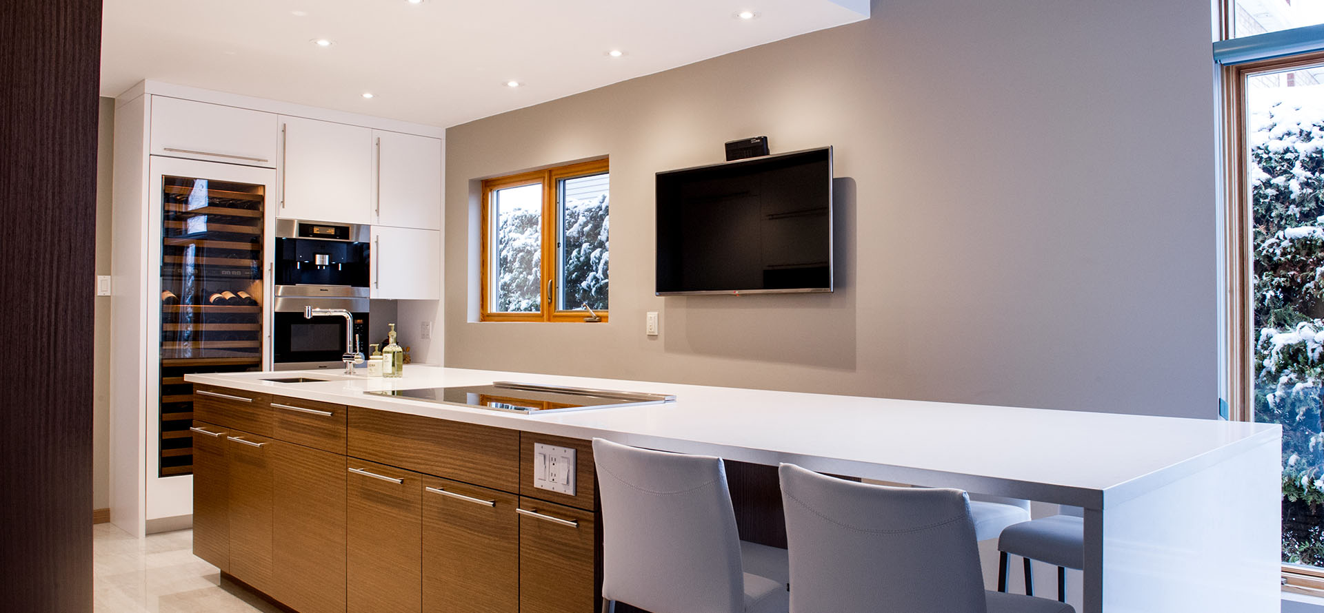 Rénovation de style contemporain avec comptoirs de quartz, à Sherbrooke